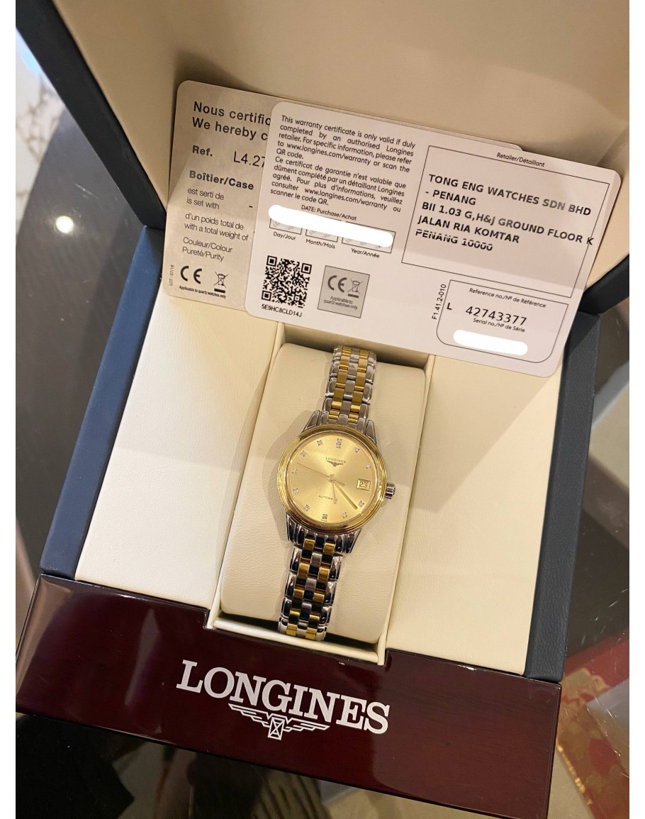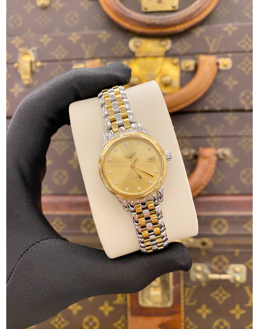 (LIKE NEW) 2024 LONGINES FLAGSHIP HALF 18K 750 YELLOW GOLD REF L4.274.3.37.7 GOLD DIAMOND DIAL 26MM AUTOMATIC WATCH -FULL SET-