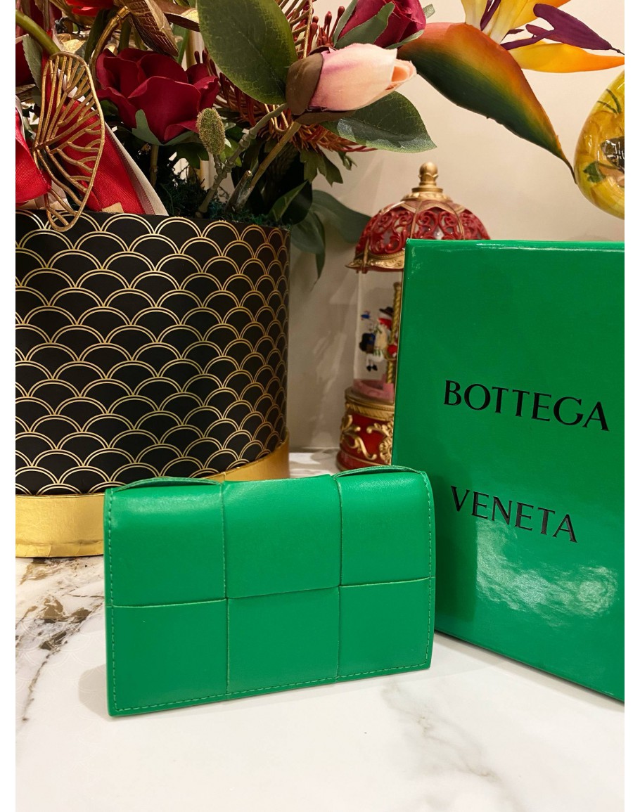 Tags:  (LIKE NEW) BOTTEGA VANETA CASSETTE WALLET IN PARAKEET GREEN - FULL SET