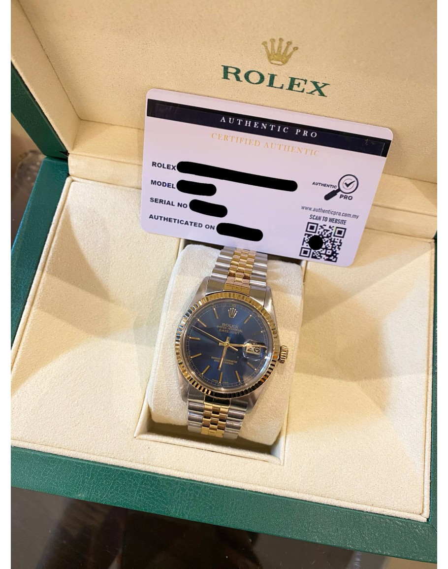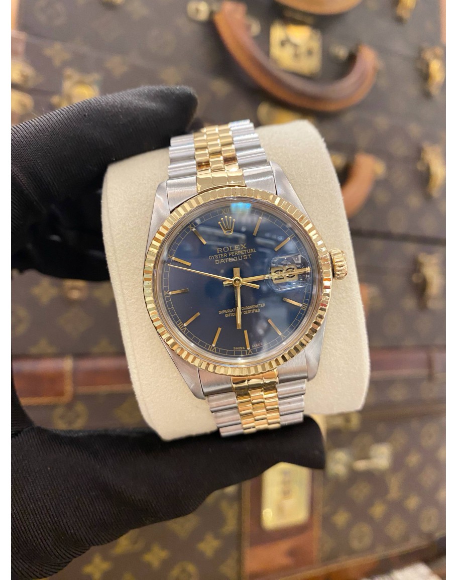 (LIKE NEW) ROLEX OYSTER PERPETUAL DATEJUST 36 REF16013 HALF 18K 750 YELLOW GOLD JUBILEE BLUE DIAL 36MM AUTOMATIC WATCH