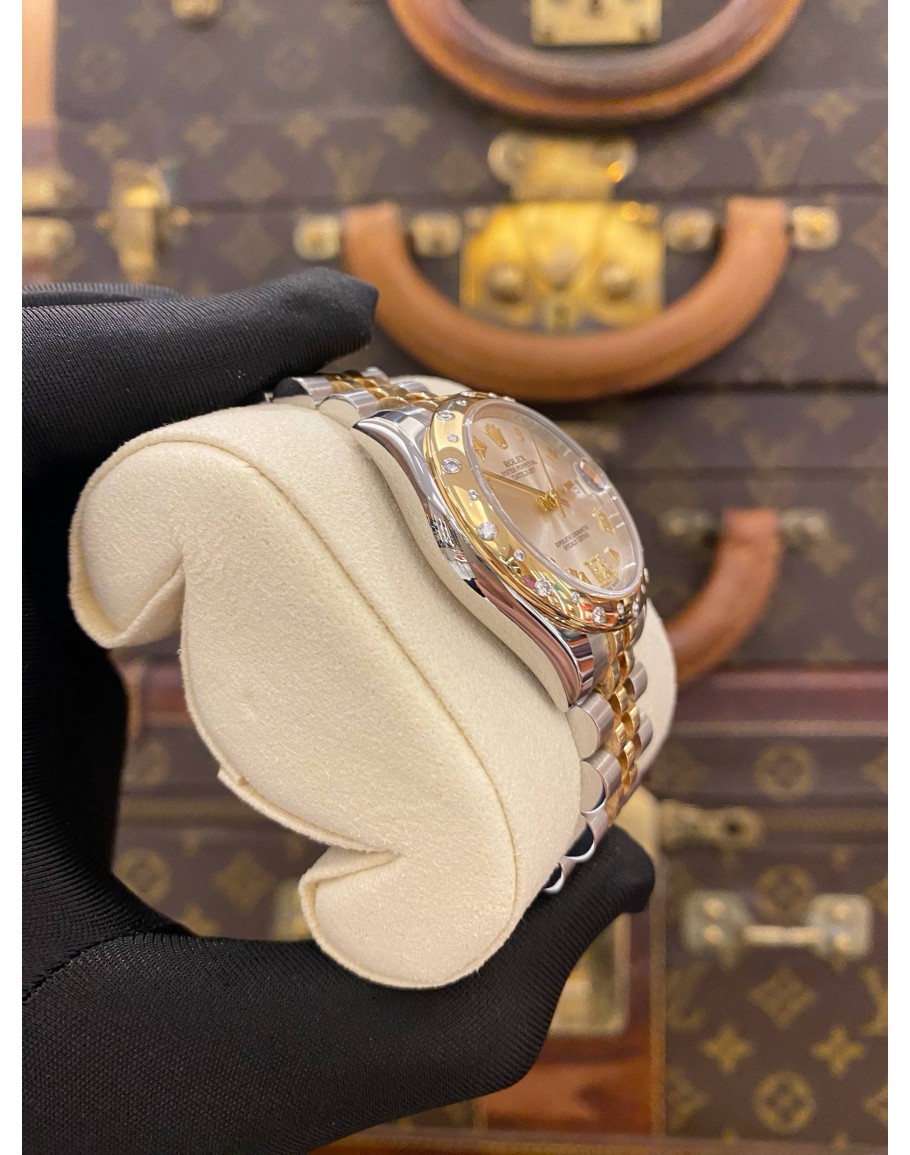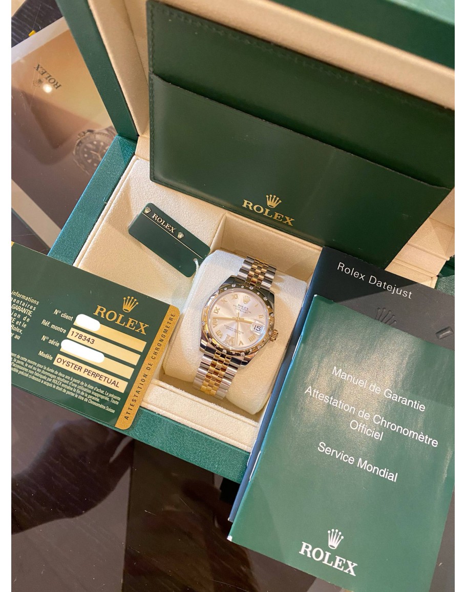 (LIKE NEW) YEAR 2015 ROLEX OYSTER PERPETUAL DATEJUST 31MM WHITE DIAMOND DIAL HALF 18K 750 GOLD JUBILEE REF 178343 -FULL SET-