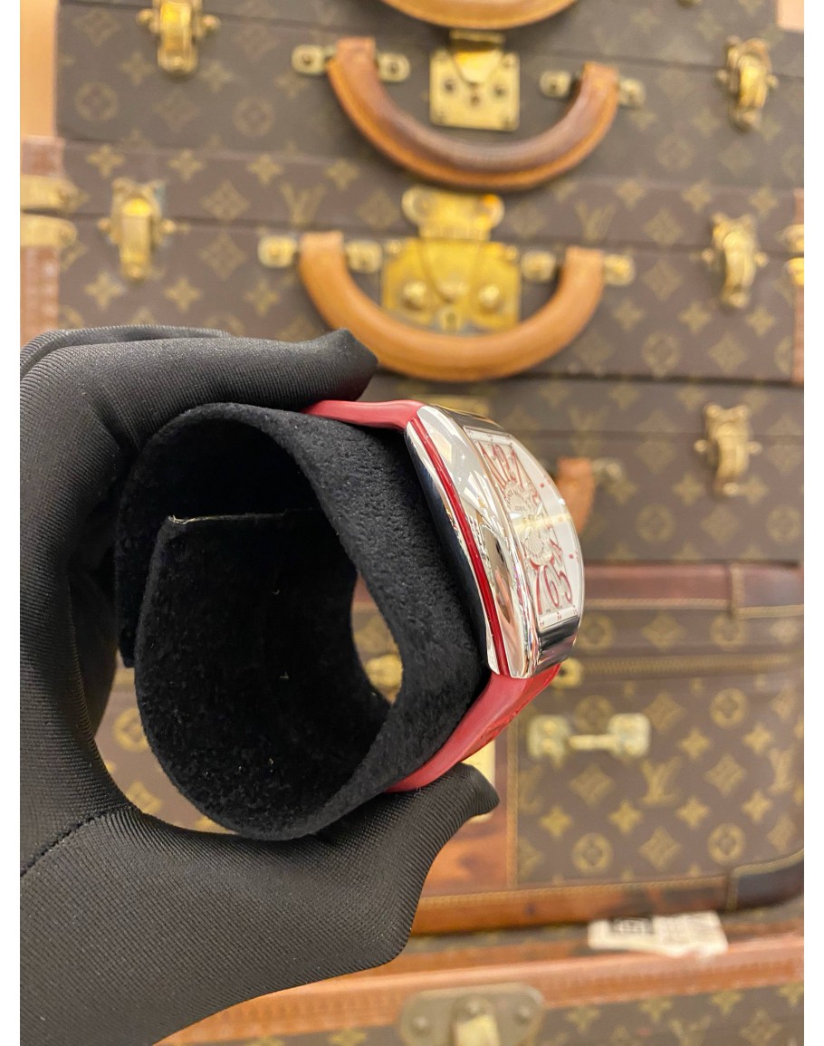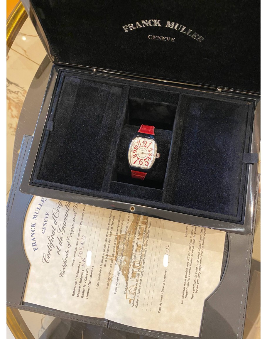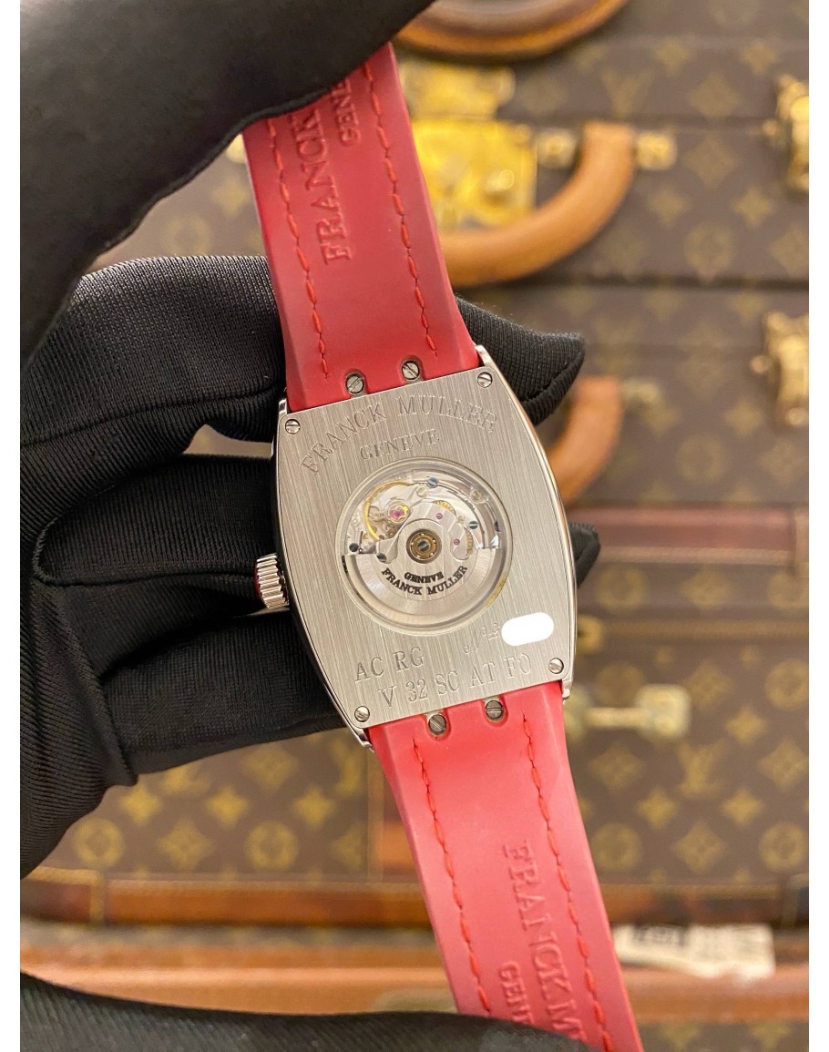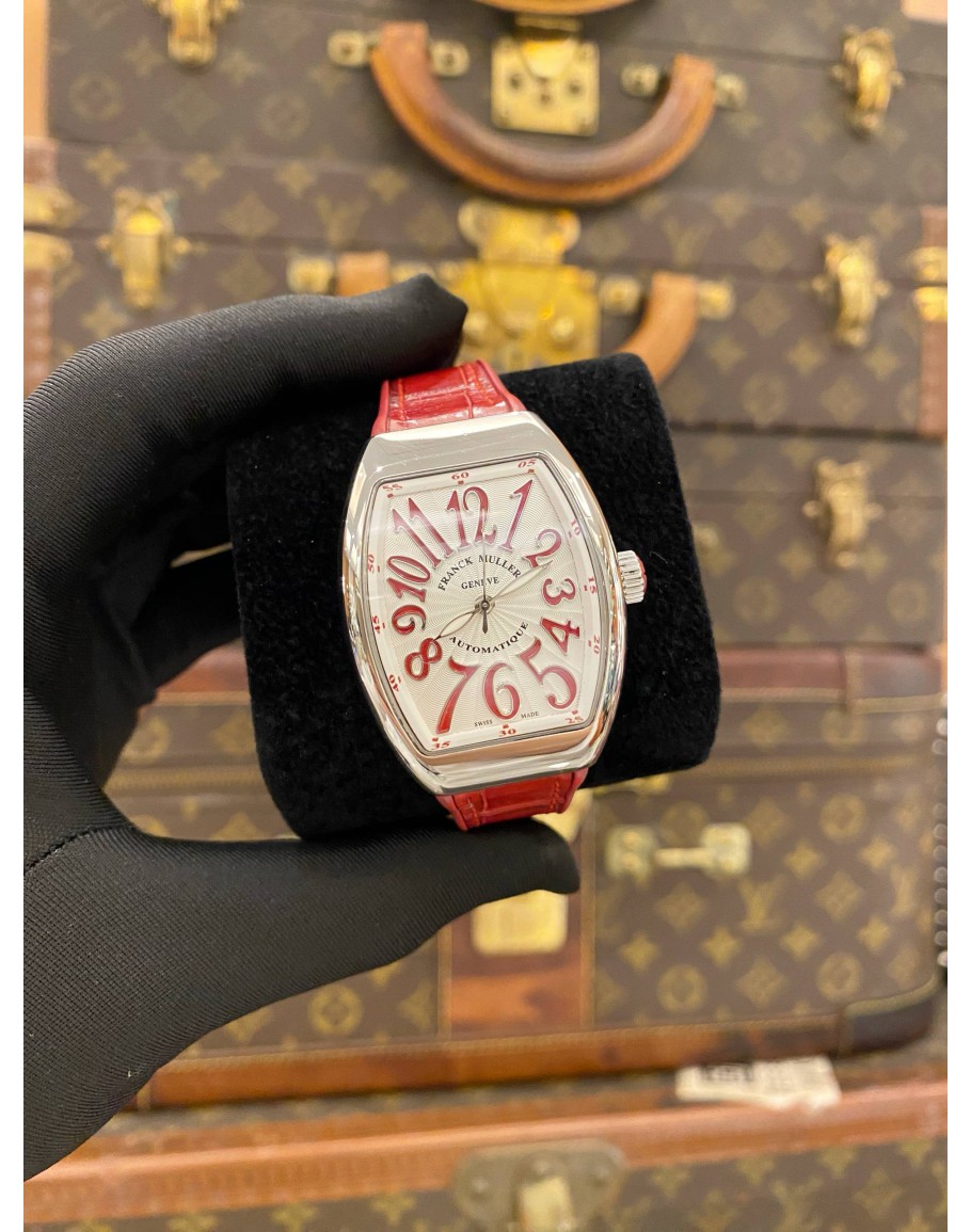 (PRE-OWNED) -FULL SET- GENDER : LADIES PRISTINE CONDITION : 9.5/10 BRAND : FRANCK MULLER YEAR : 2022 MODEL : VANGUARD REFERENCE NUMBER : V32 SC AT FO AC CASE DIAMETER : 32MM X 40MM MOVEMENT : AUTOMATIC CASE MATERIAL : STAINLESS STEEL BEZEL MATERIAL : STAINLESS STEEL BRACELET MATERIAL : RED LEATHER STRAP CLASP : PIN BUCKLE CLASP MATERIAL : STAINLESS STEEL DIAL : WHITE WITH RED ARABIC NUMERALS COMES WITH : CERTIFICATE & BOX