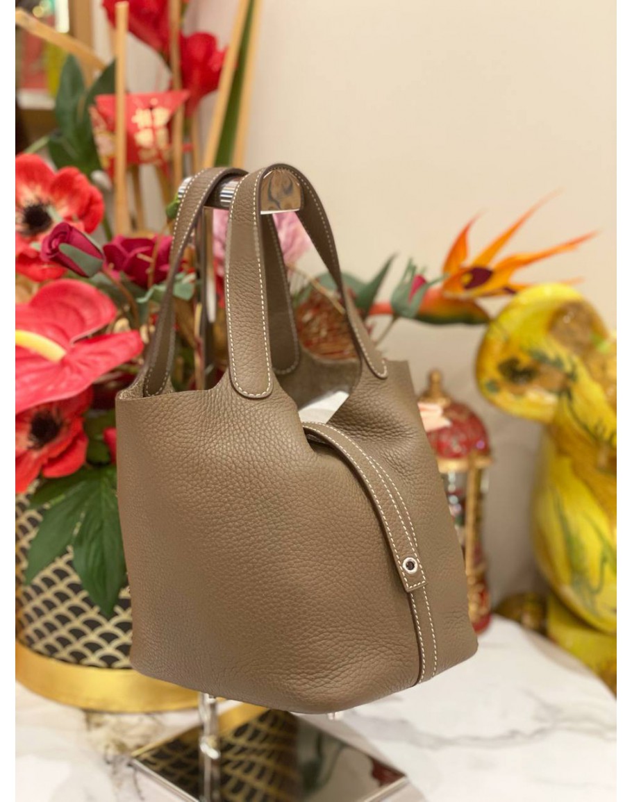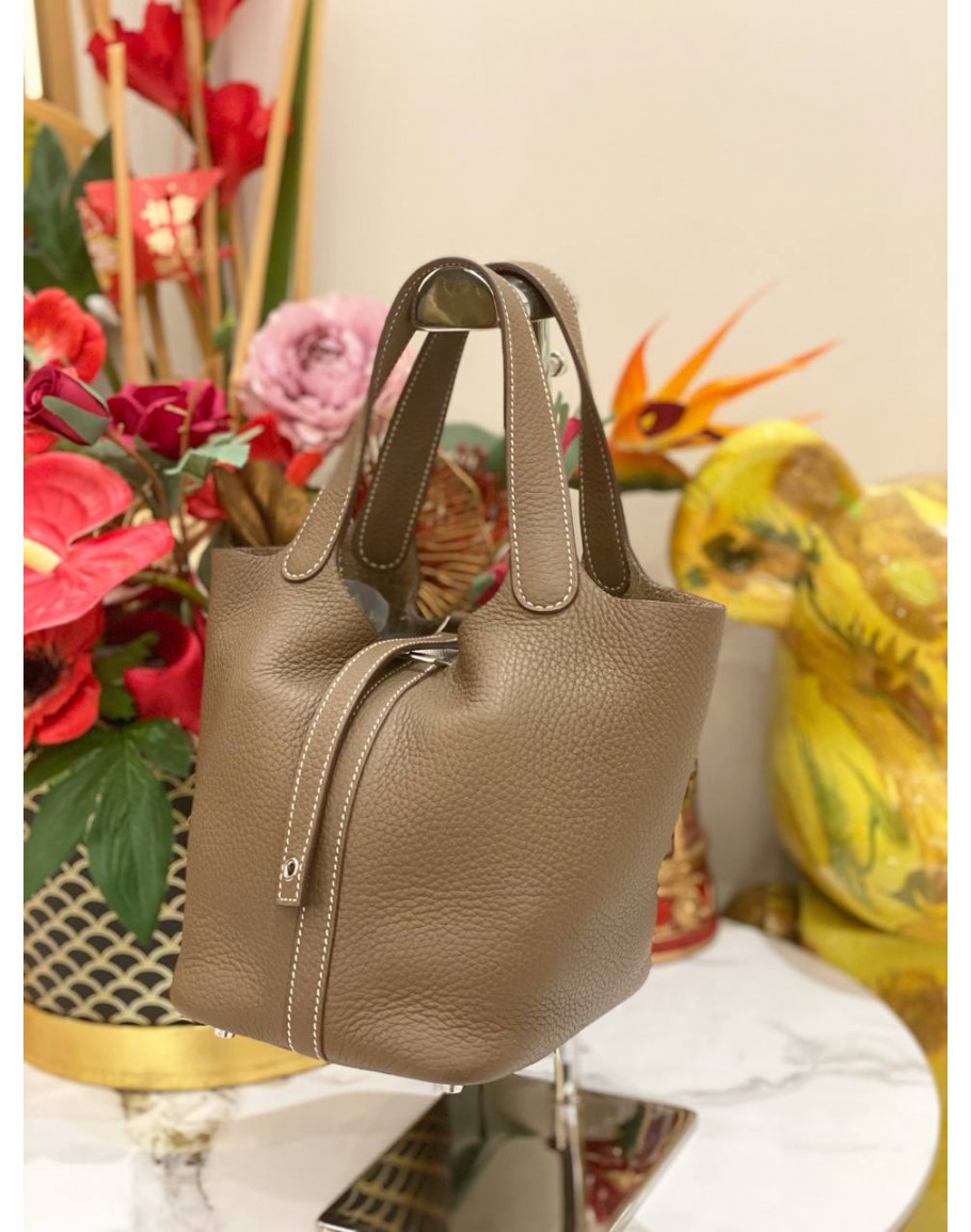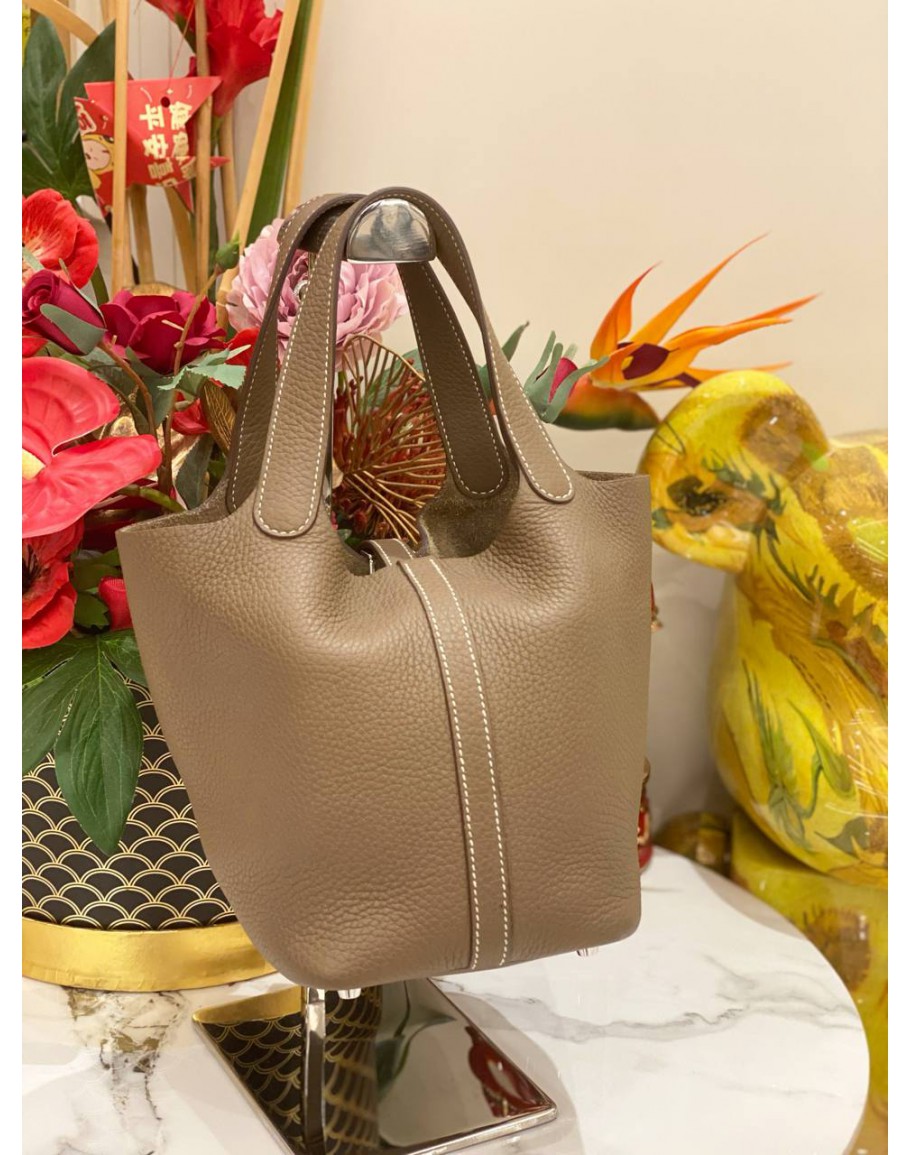 2022 HERMES PICOTIN 18 IN ETOUPE CLEMENCE LEATHER