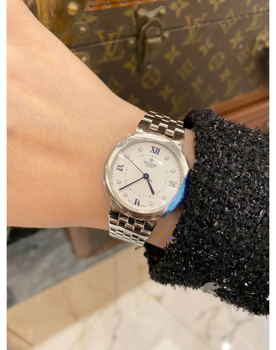 (BRAND NEW) 2024 TUDOR CLAIR DE ROSE REF 35800 SILVER SUNRAY DIAL WITH DIAMOND 34MM AUTOMATIC WATCH -FULL SET-