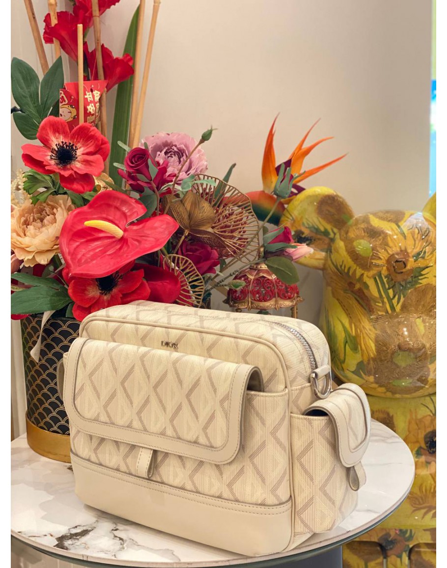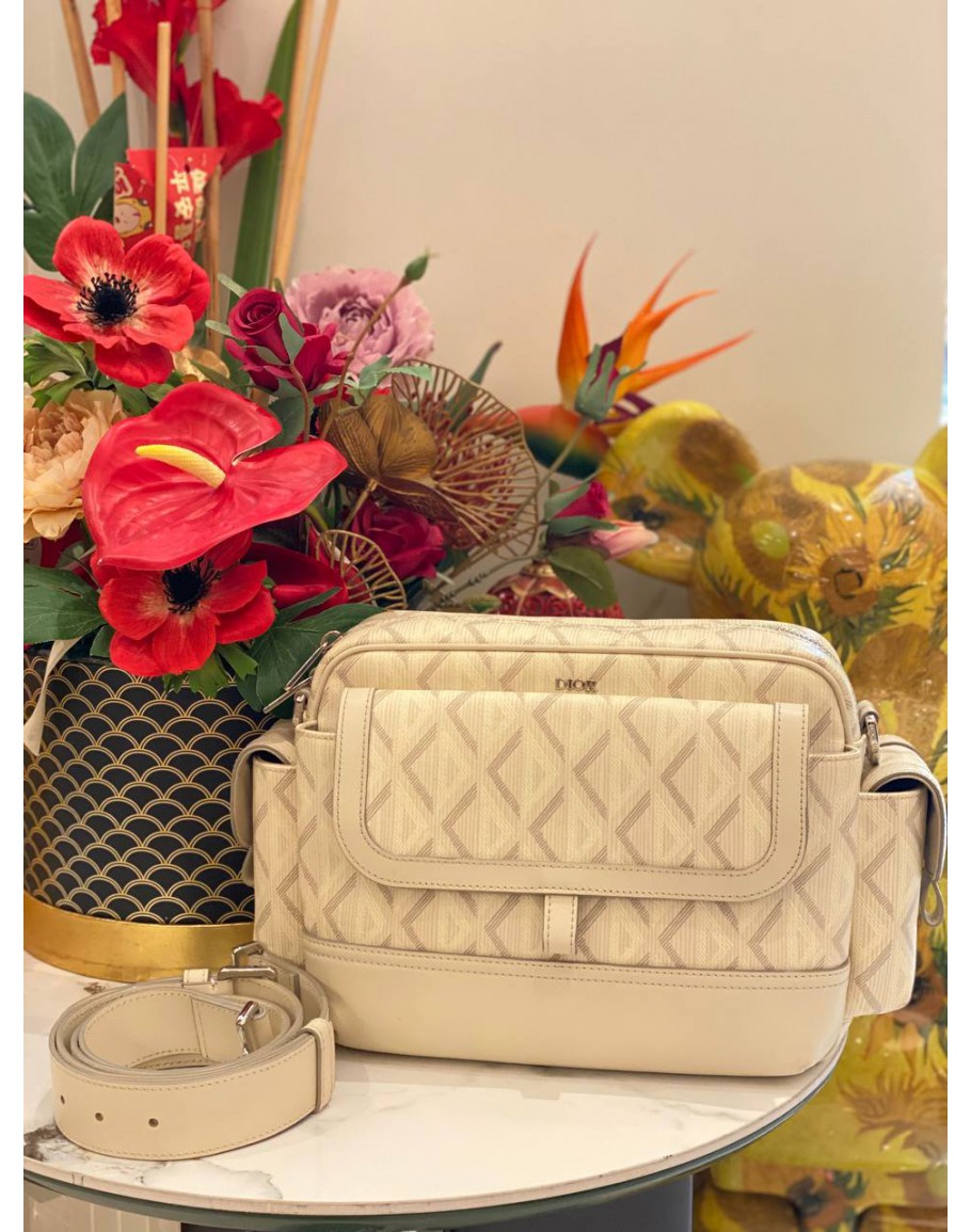 Product Code: CHRISTIAN DIOR HIT THE ROAD IN CREAM CANVAS MESSENGER BAG