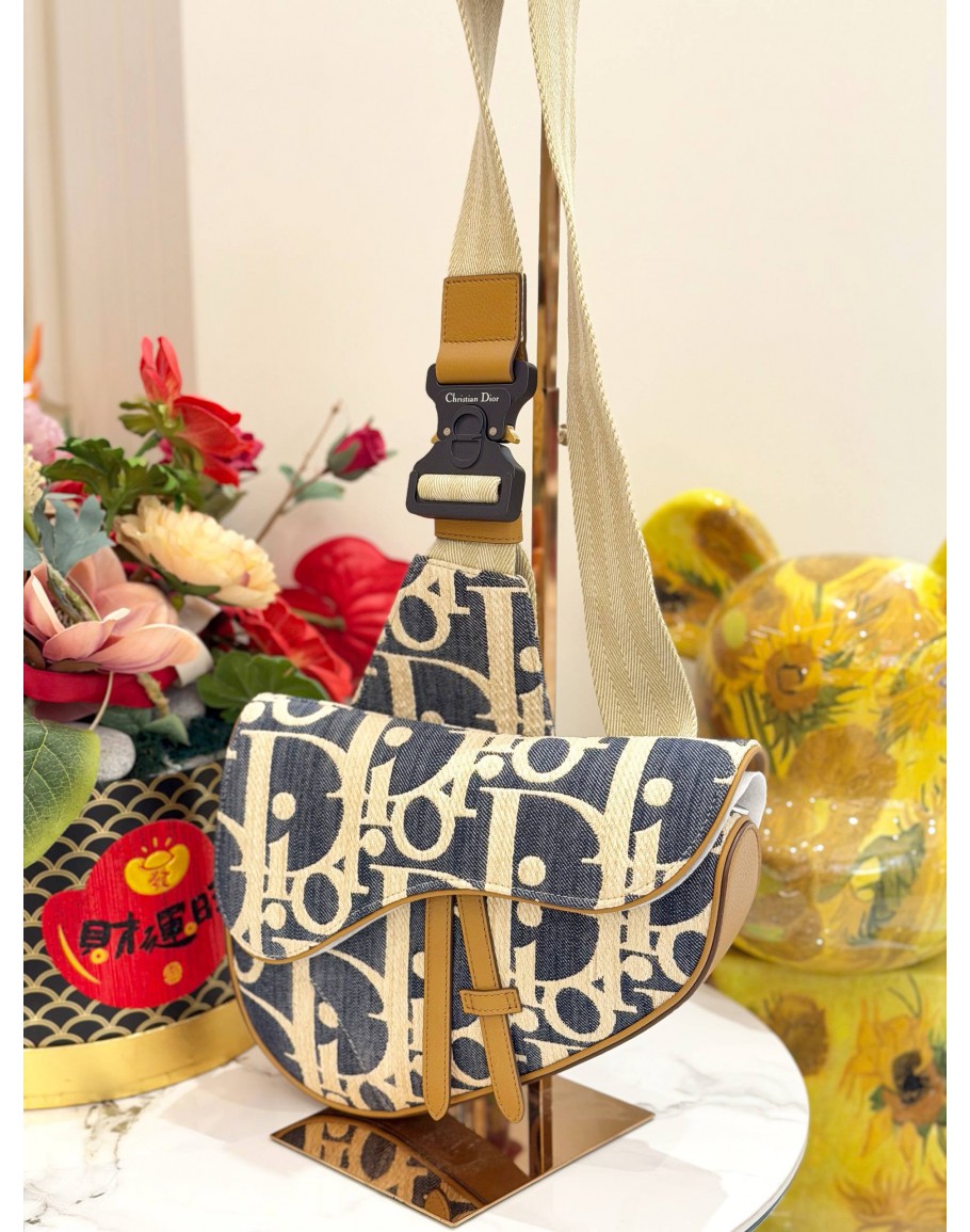 Tags: CHRISTIAN DIOR SADDLE IN BLUE OBLIQUE EMBROIDERY WITH TAN LEATHER TRIM