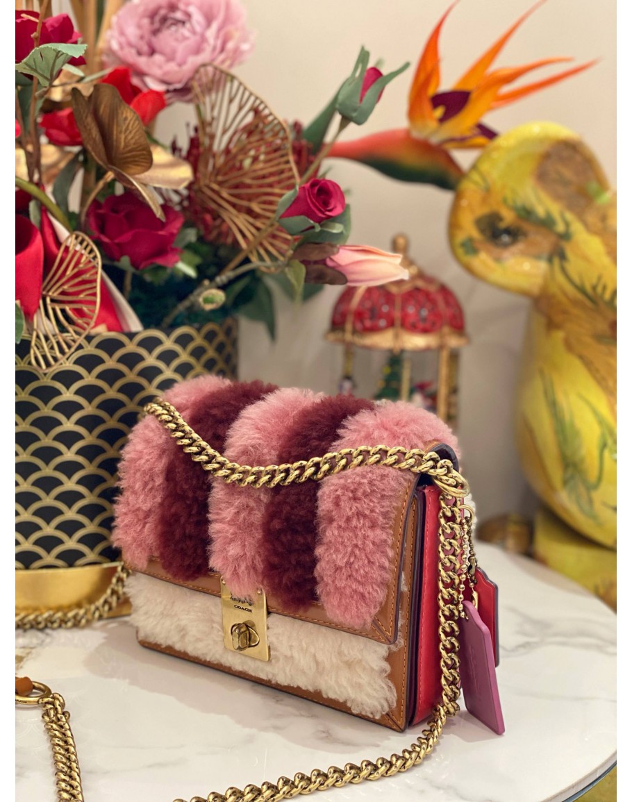 COACH SHEARLING HUTTON SHOULDER BAG 18 WITH PATCWORK 3 COLOURS