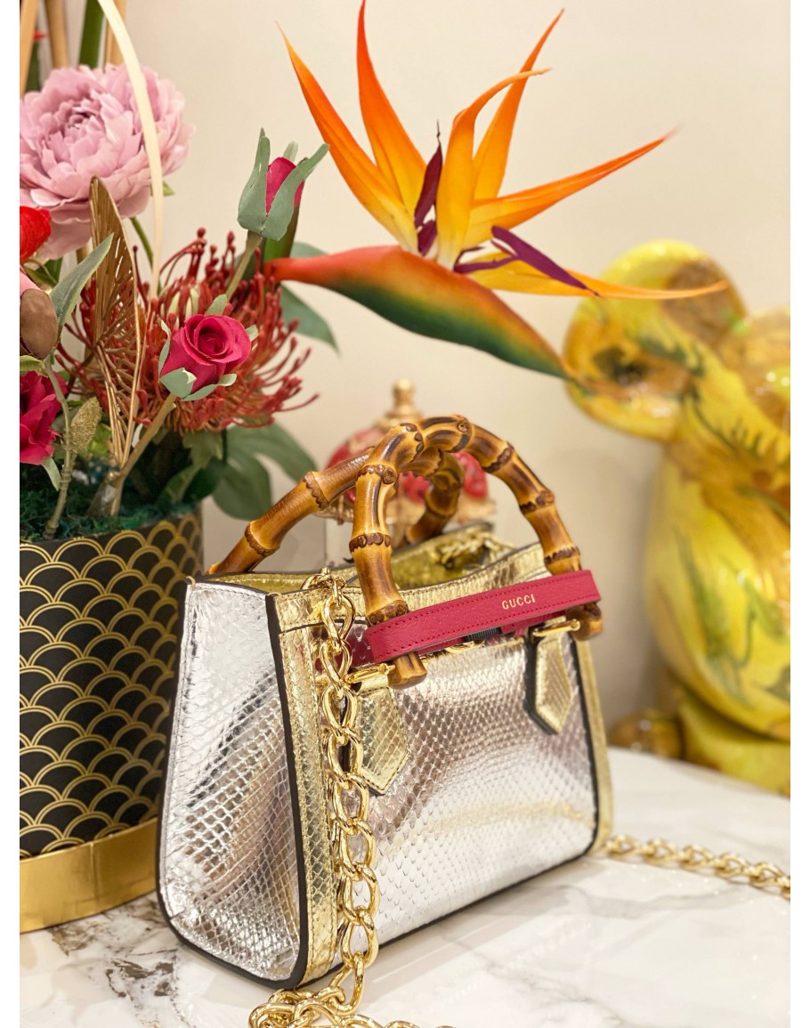 Product Code: GUCCI BAMBOO 1947 MINI TOP HANDLE BAG IN METALLIC PYTHON