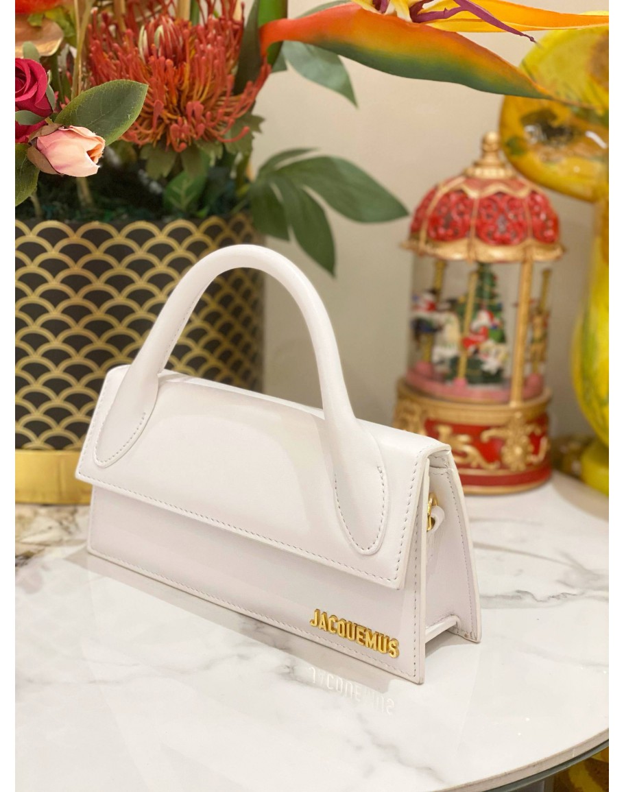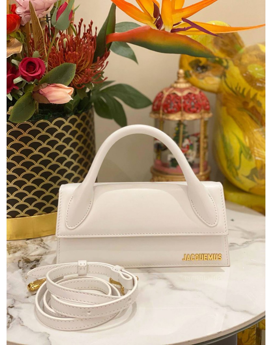 Tags: JACQUEMUS THE LONG CHIQUITO TOP HANDLE AND CROSSBODY BAG IN WHITE CALFSKIN LEATHER