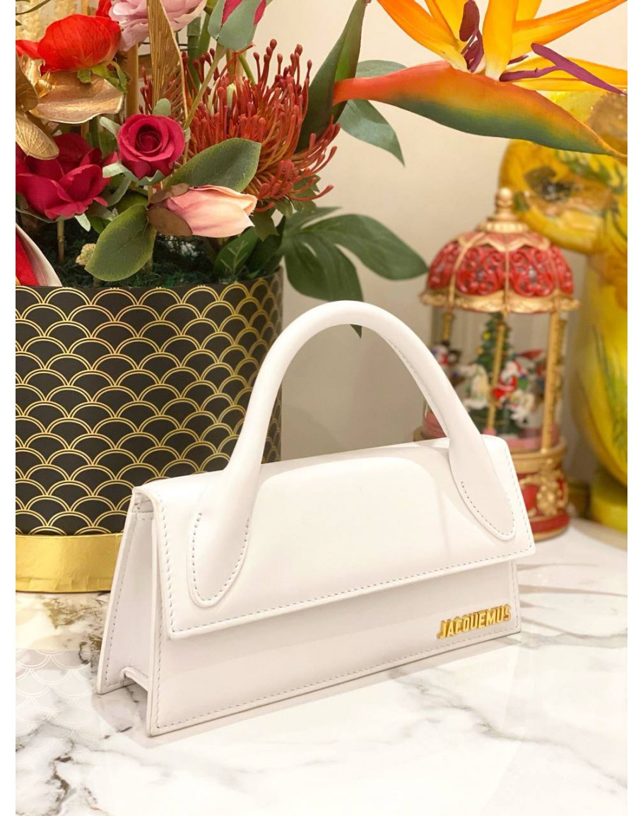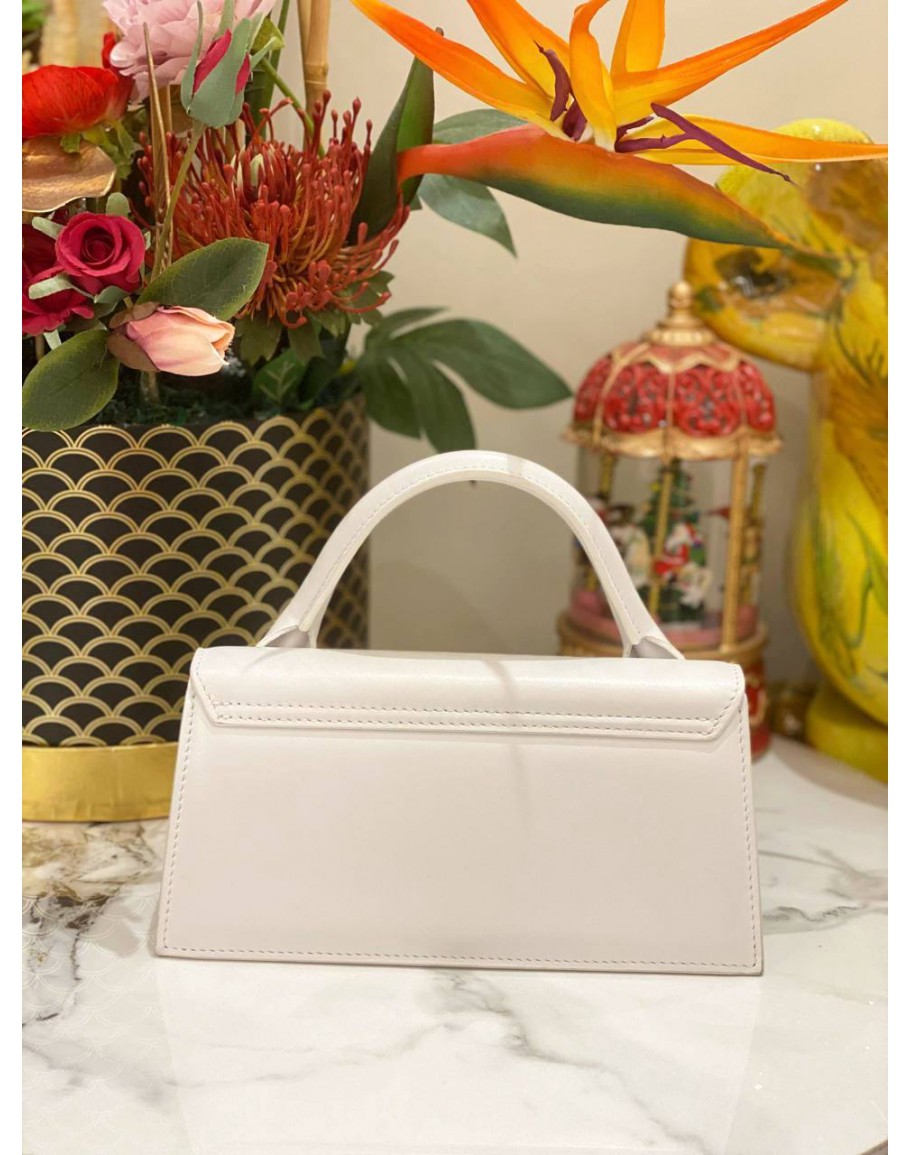 JACQUEMUS THE LONG CHIQUITO TOP HANDLE AND CROSSBODY BAG IN WHITE CALFSKIN LEATHER