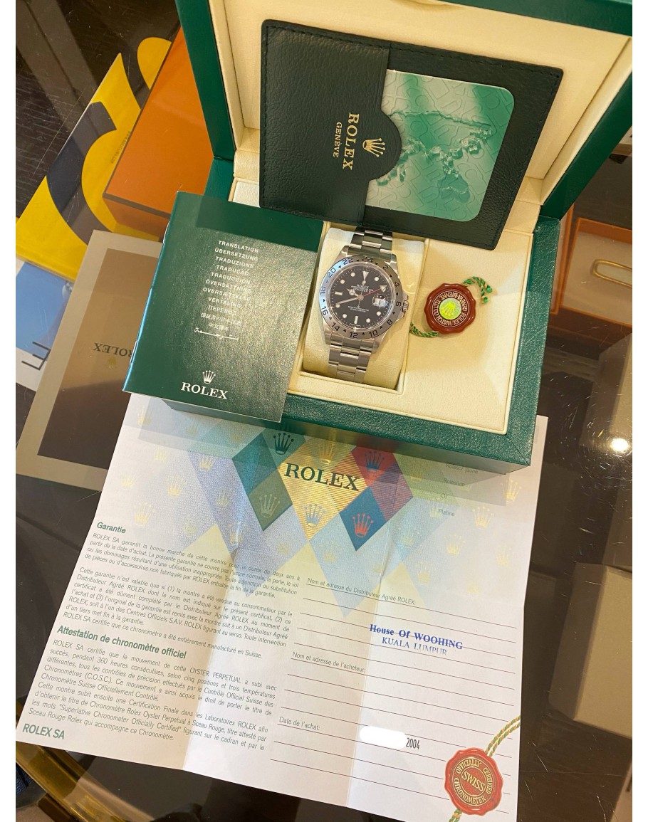 (LIKE NEW) -FULL SET- GENDER : MEN BRAND NEW CONDITION : 9.5/10 BRAND : ROLEX YEAR : 2004 MODEL : OYSTER PERPETUAL DATE EXPLORER II REFERENCE NUMBER : 16570 CASE DIAMETER : 40MM MOVEMENT : AUTOMATIC CASE MATERIAL : STAINLESS STEEL BEZEL MATERIAL : STAINLESS STEEL BRACELET MATERIAL : STAINLESS STEEL CLASP : FOLDING CLASP CLASP MATERIAL : STAINLESS STEEL DIAL : BLACK COMES WITH : CERTIFICATE PAPER, BOOKLETS , GREEN TAG & BOX