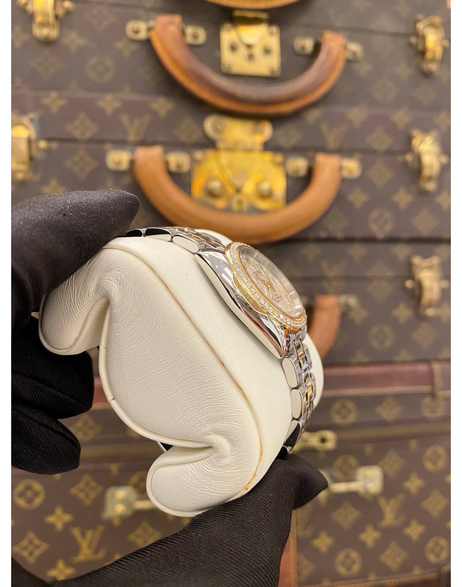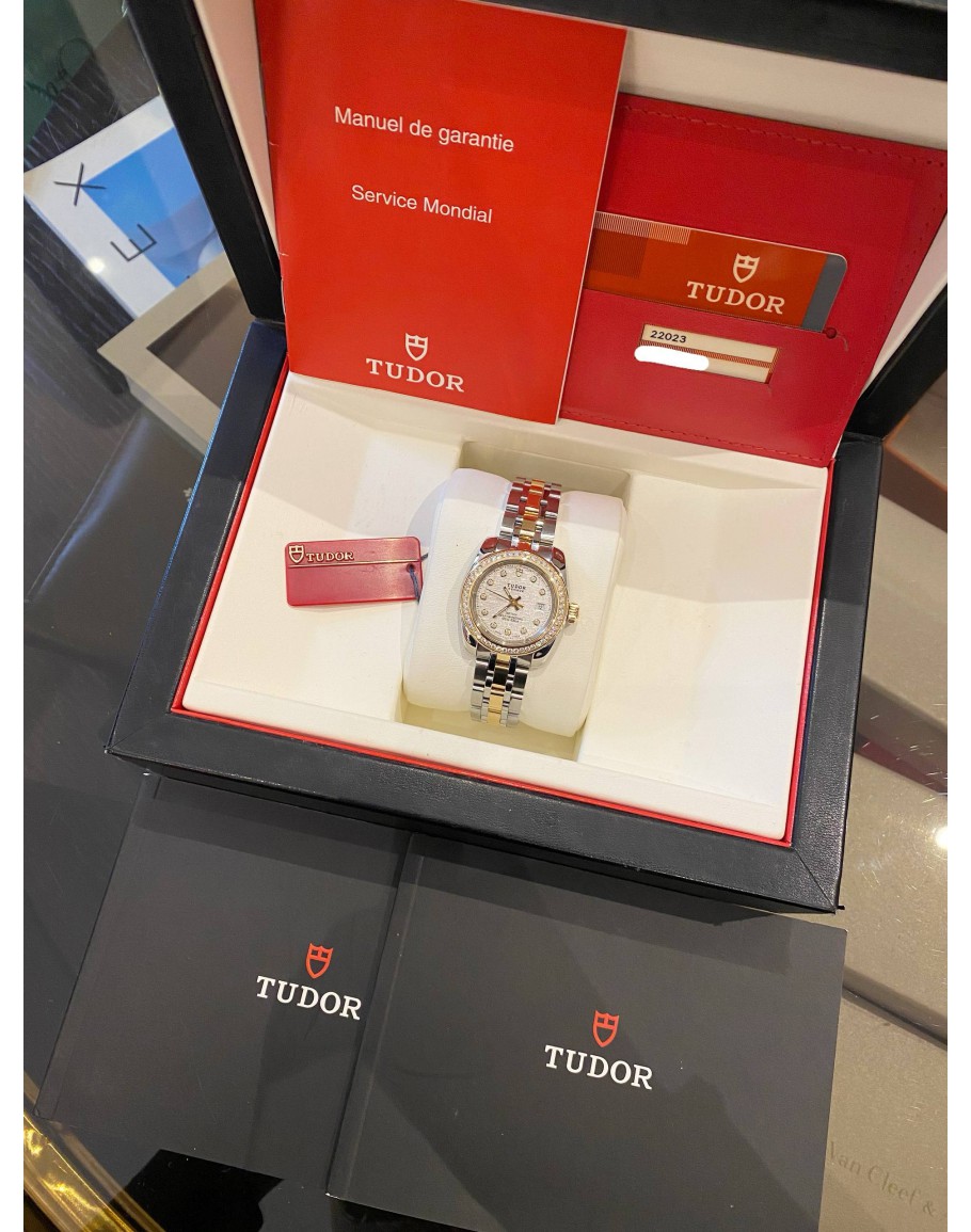 (LIKE NEW) 2011 TUDOR CLASSIC DATE REF 22023 HALF 18K 750 YELLOW GOLD DIAMOND BEZEL DIAMOND DIAL 28MM AUTOMATIC WATCH -FULL SET-