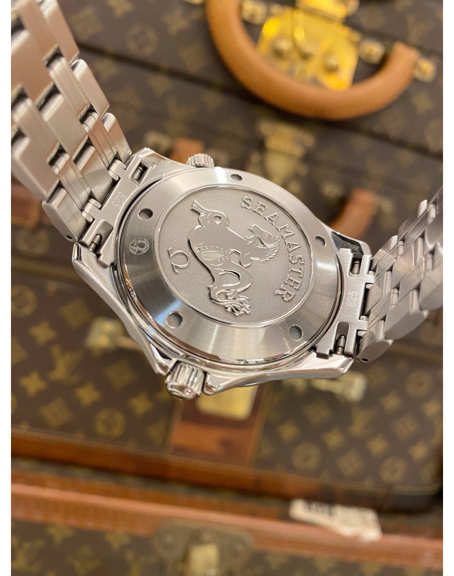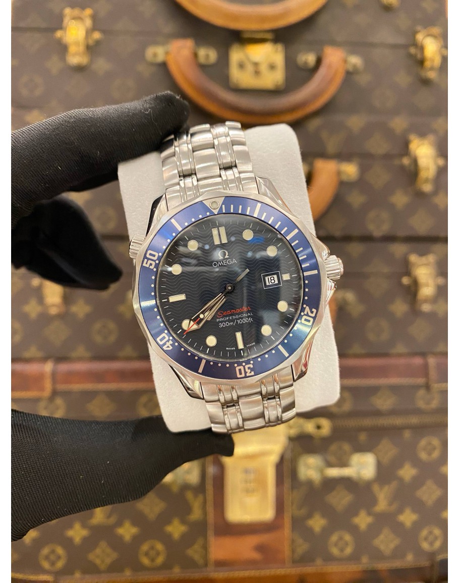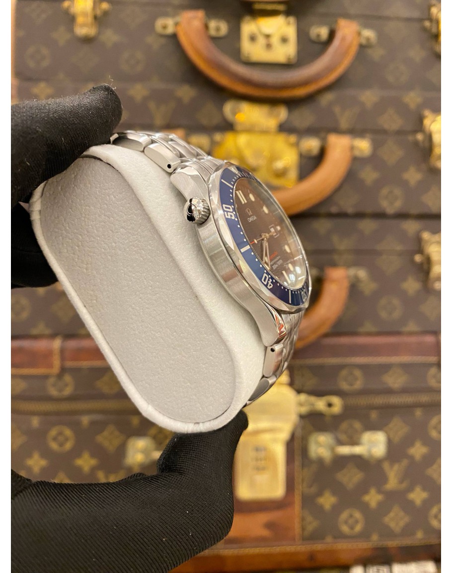 (LIKE NEW) GENDER : MEN LIKE NEW CONDITION : 9.5/10 BRAND : OMEGA YEAR : 2013 MODEL : SEAMASTER DIVER 300M PROFESSIONAL REFERENCE NUMBER : 2221.80.00 CASE DIAMETER : 41MM MOVEMENT : QUARTZ BEZEL MATERIAL : BLUE ALUMINUM UNIDIRECTIONAL BEZEL CASE MATERIAL : STAINLESS STEEL BRACELET MATERIAL : STAINLESS STEEL CLASP : FOLDING CLASP CLASP MATERIAL : STAINLESS STEEL DIAL : BLUE COMES WITH : CERTIFICATE CARD OF AUTHENTICITY & BOX