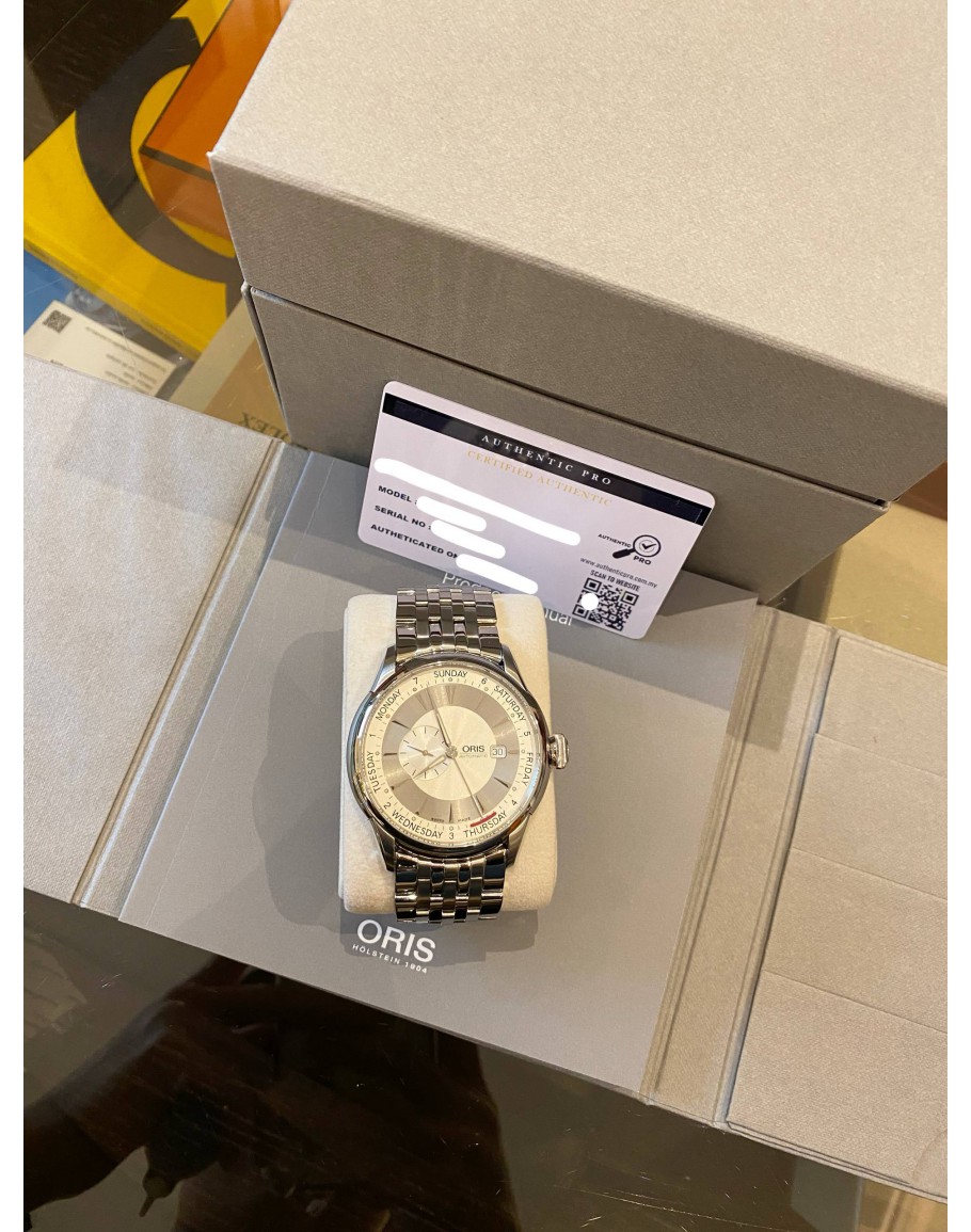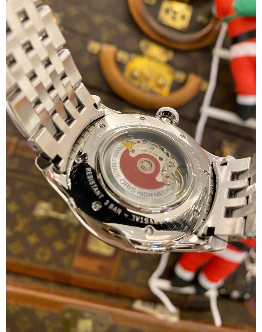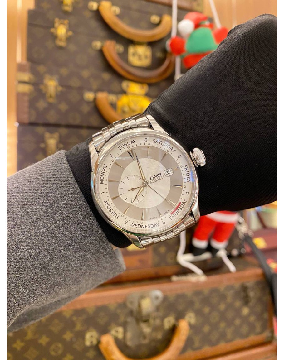 (LIKE NEW) GENDER : UNISEX LIKE NEW CONDITION : 9.5/10 BRAND : ORIS YEAR : 2015 MODEL : ATELIER SMALL SECOND POINTER DAY REFERENCE NUMBER : 01 645 7596 4051 CASE DIAMETER : 45MM MOVEMENT : AUTOMATIC CASE MATERIAL : STAINLESS STEEL BEZEL MATERIAL : STAINLESS STEEL BRACELET MATERIAL : STAINLESS STEEL CLASP : DEPLOYMENT CLASP CLASP MATERIAL : STAINLESS STEEL DIAL : SILVER COMES WITH : CERTIFICATE CARD OF AUTHENTICITY, BOOKLETS & BOX