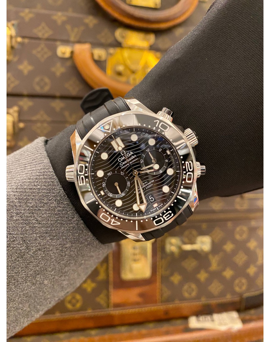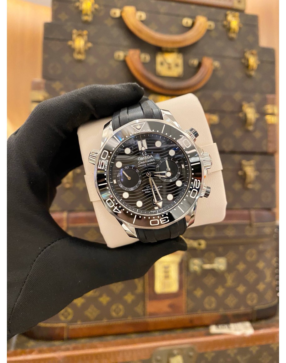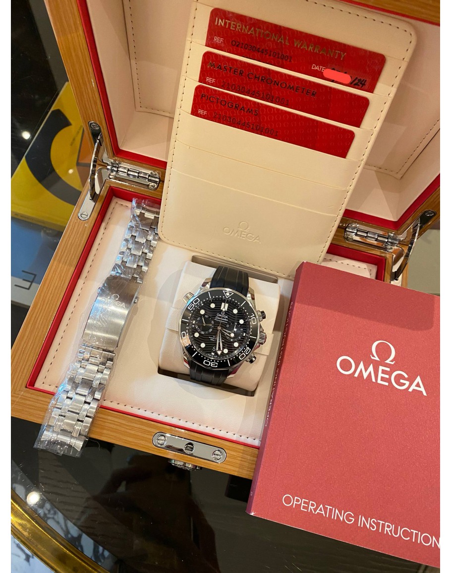 (LIKE NEW) -FULL SET- GENDER : MEN LIKE NEW CONDITION : 9.5/10 BRAND : OMEGA YEAR : 2024 MODEL : SEAMASTER DIVER 300M CHRONOGRAPH REFERENCE NUMBER : 210.30.44.51.01.001 CASE DIAMETER : 44MM MOVEMENT : AUTOMATIC CASE MATERIAL : STAINLESS STEEL BEZEL MATERIAL : CERAMIC BRACELET MATERIAL : RUBBER STRAP & STAINLESS STEEL CLASP : PIN BUCKLE CLASP MATERIAL : STAINLESS STEEL DIAL : BLACK COMES WITH : CERTIFICATE CARDS, BOOKKLES, EXTRA STAINLESS STEEL BRACELET & BOX