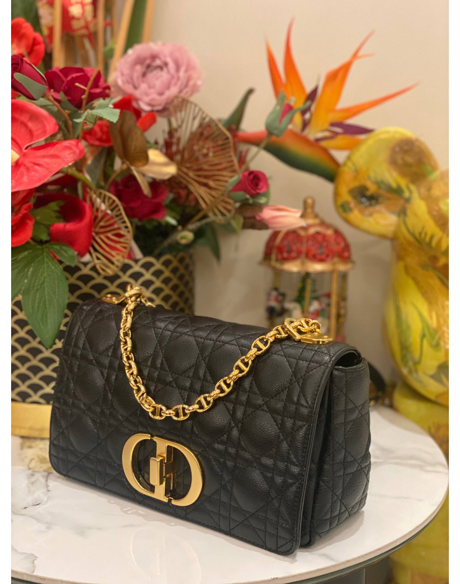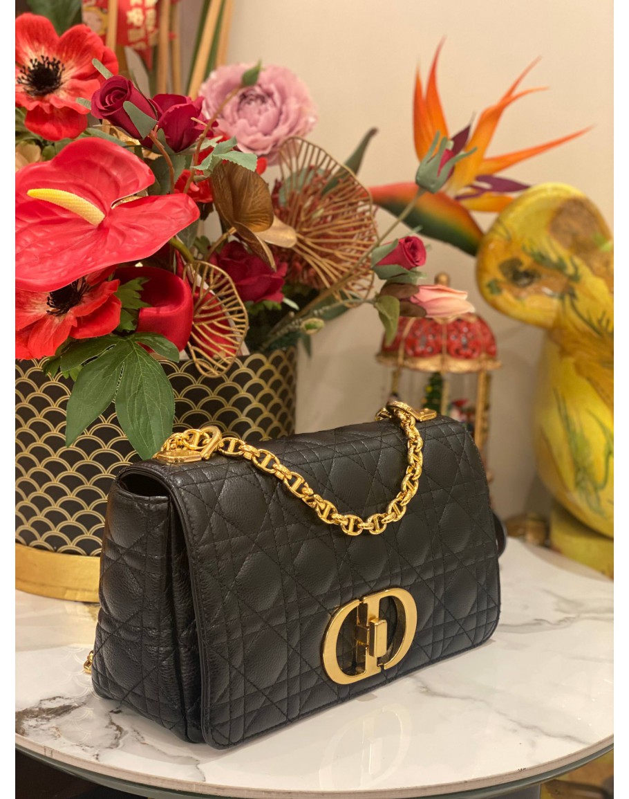(LIKE NEW) CHRISTIAN DIOR MEDIUM DIOR CARO BAG WITH GOLD CHAIN IN BLACK SUPPLE CANNAGE CALFSKIN LEATHER