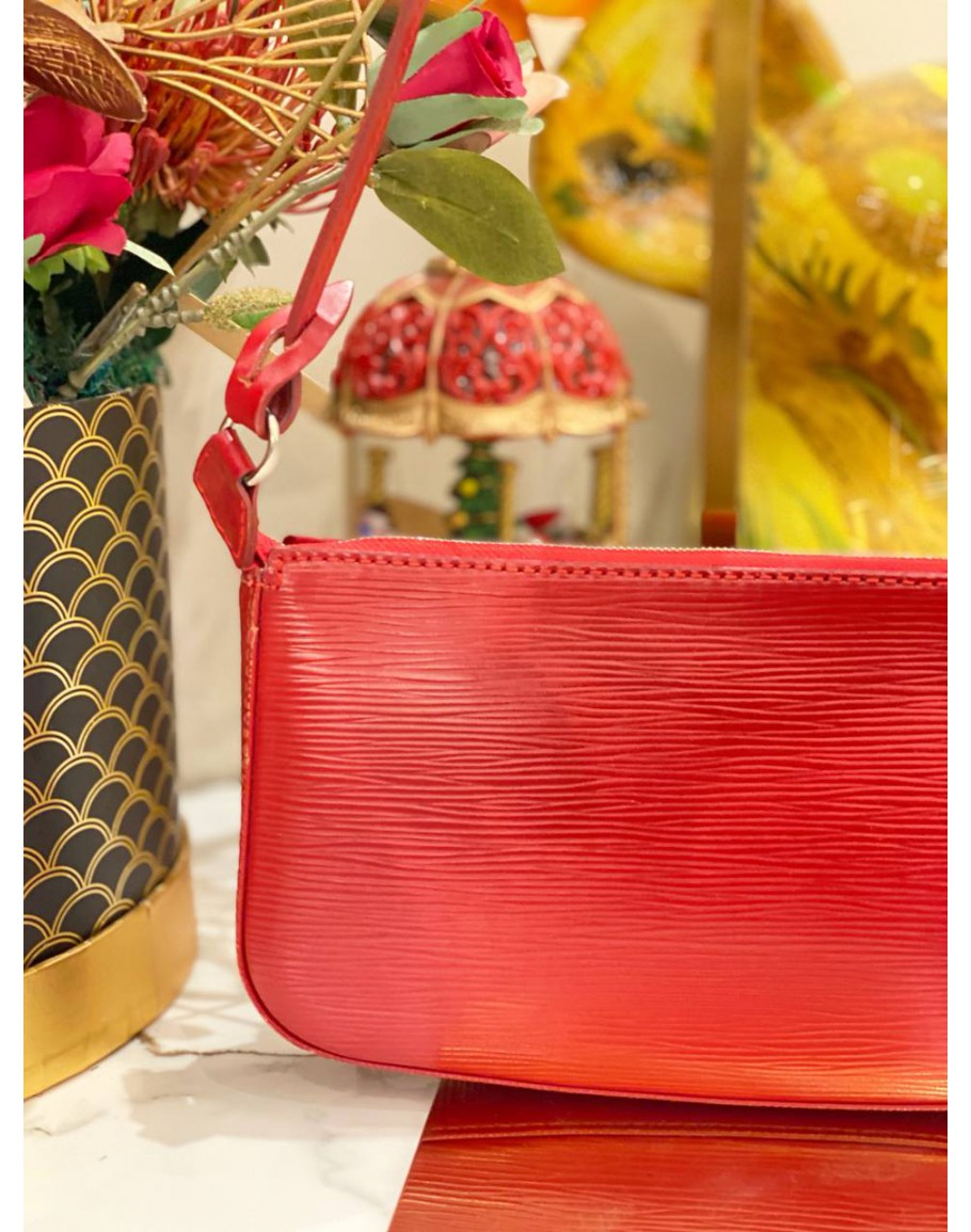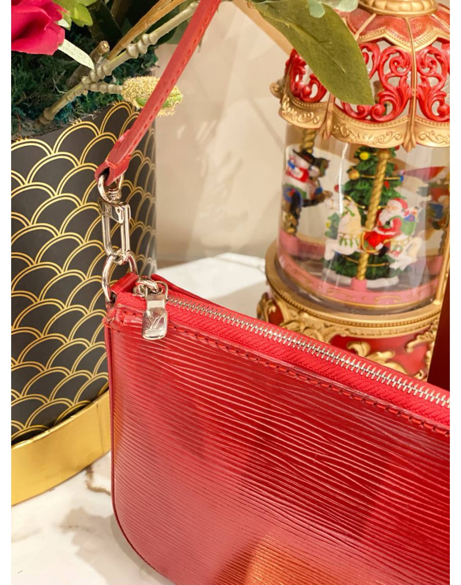 LOUIS VUITTON EPI LEATHER SHOULDER BAG IN RED SILVER HARDWARE