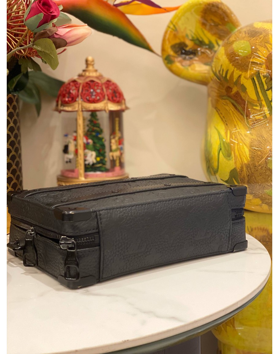 MICROCHIP LOUIS VUITTON M59163 HANDLE SOFT TRUNK CROSSBODY BAG IN BLACK TAURILLON MONOGRAM CALFSKIN LEATHER -FULL SET-