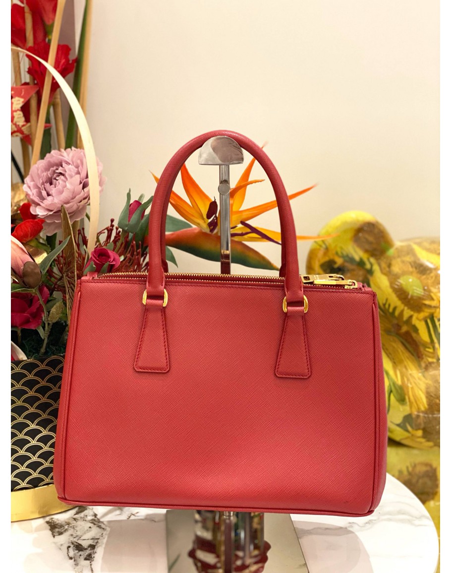 PRADA BN1801 MEDIUM GALLERIA IN RED SAFFIANO LUX LEATHER HANDLE ZIPPED BAG WITH ADJUSTABLE STRAP