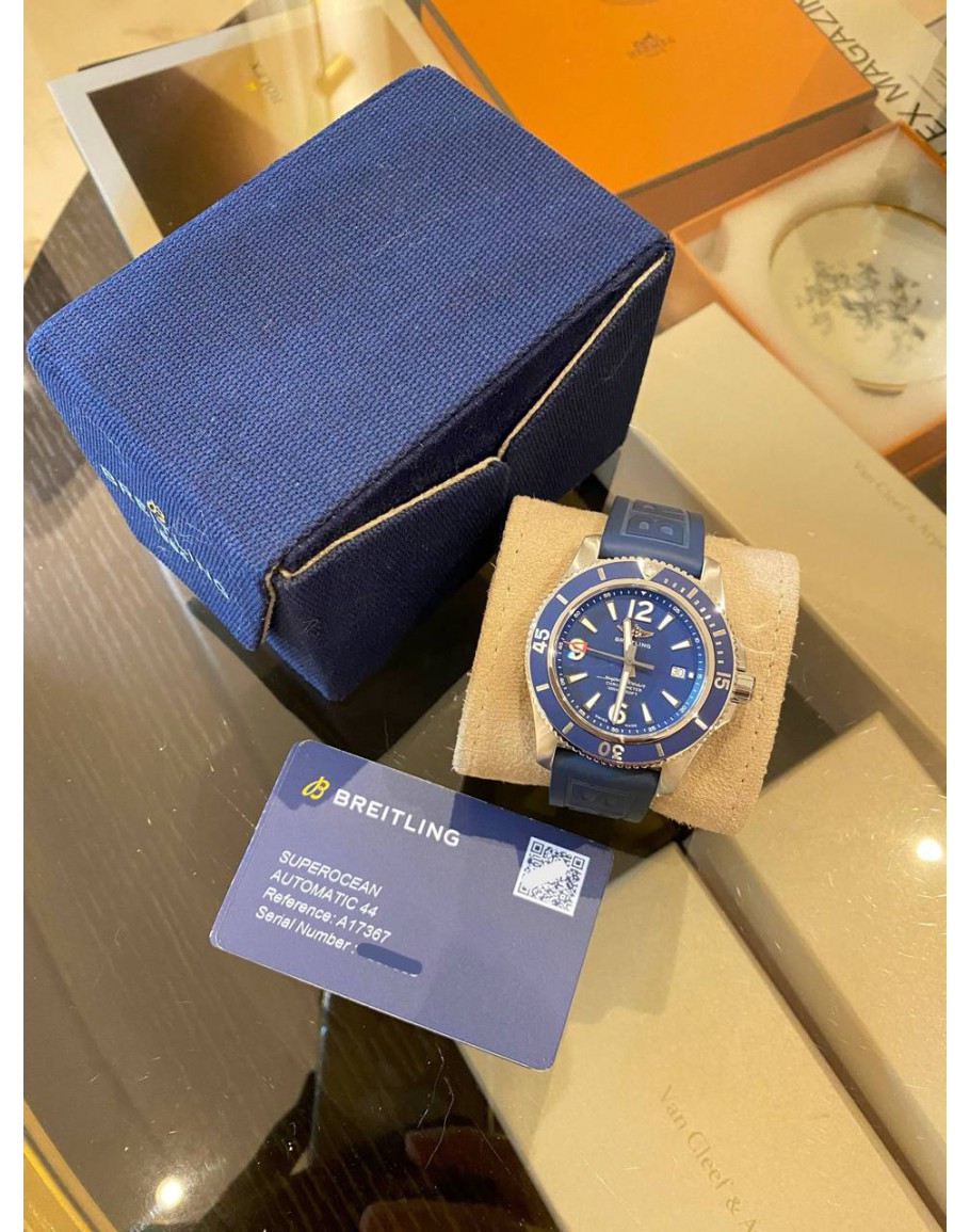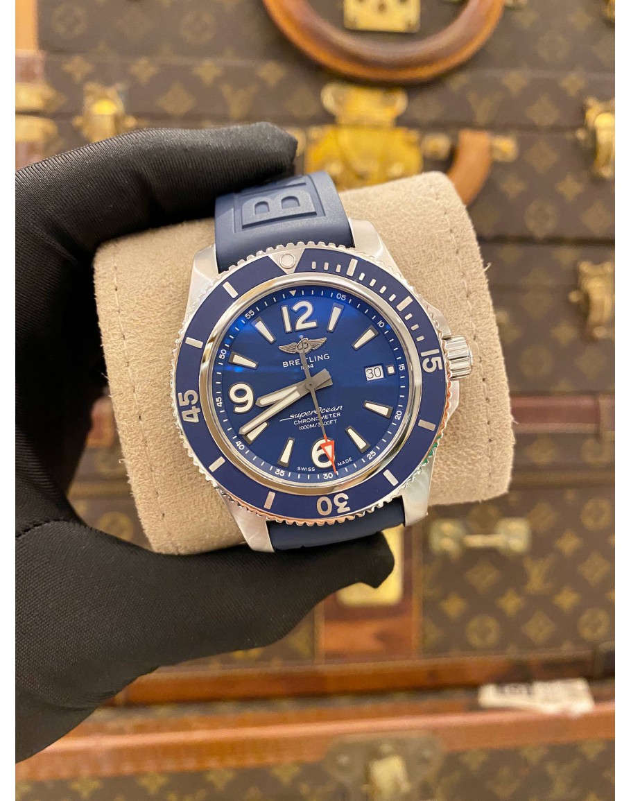 (UNUSED) 2022 BREITLING SUPEROCEAN BLUE CERAMIC BEZEL REF A17367 BLUE DIAL 44MM AUTOMATIC WATCH -FULL SET-