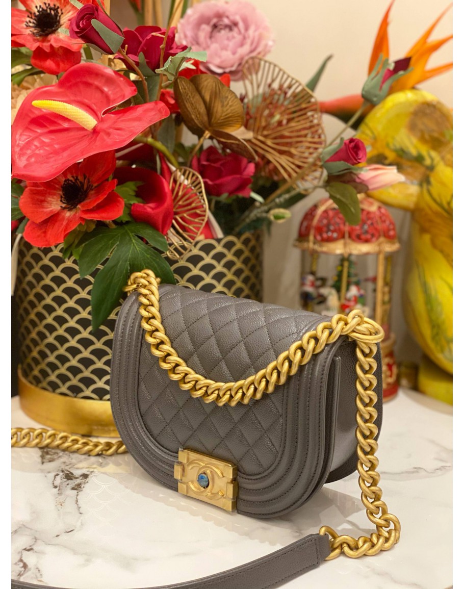 Tags: (UNUSED) 2024 CHANEL ROUND BOY SHOULDER AND CROSSBODY BAG IN GREY CAVIAR LEATHER -FULL SET-