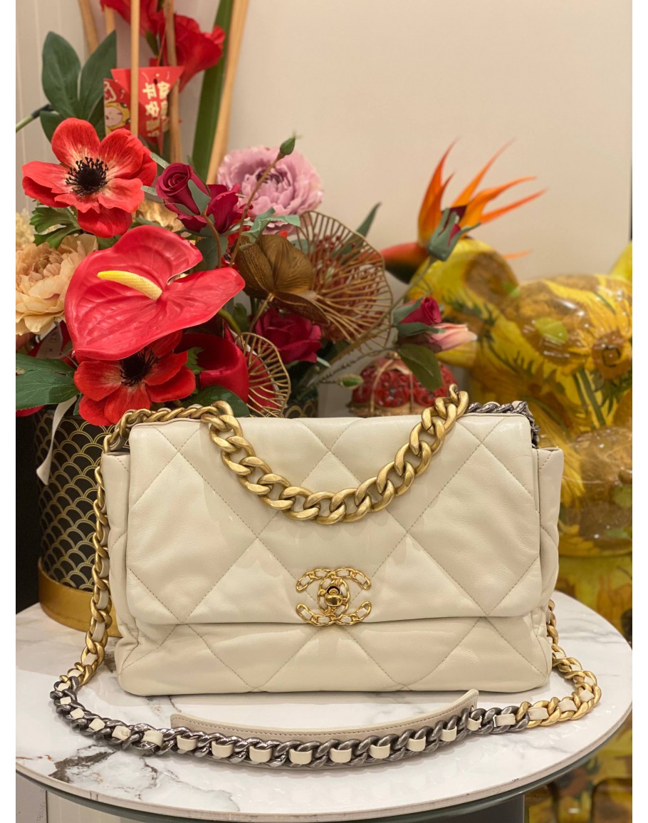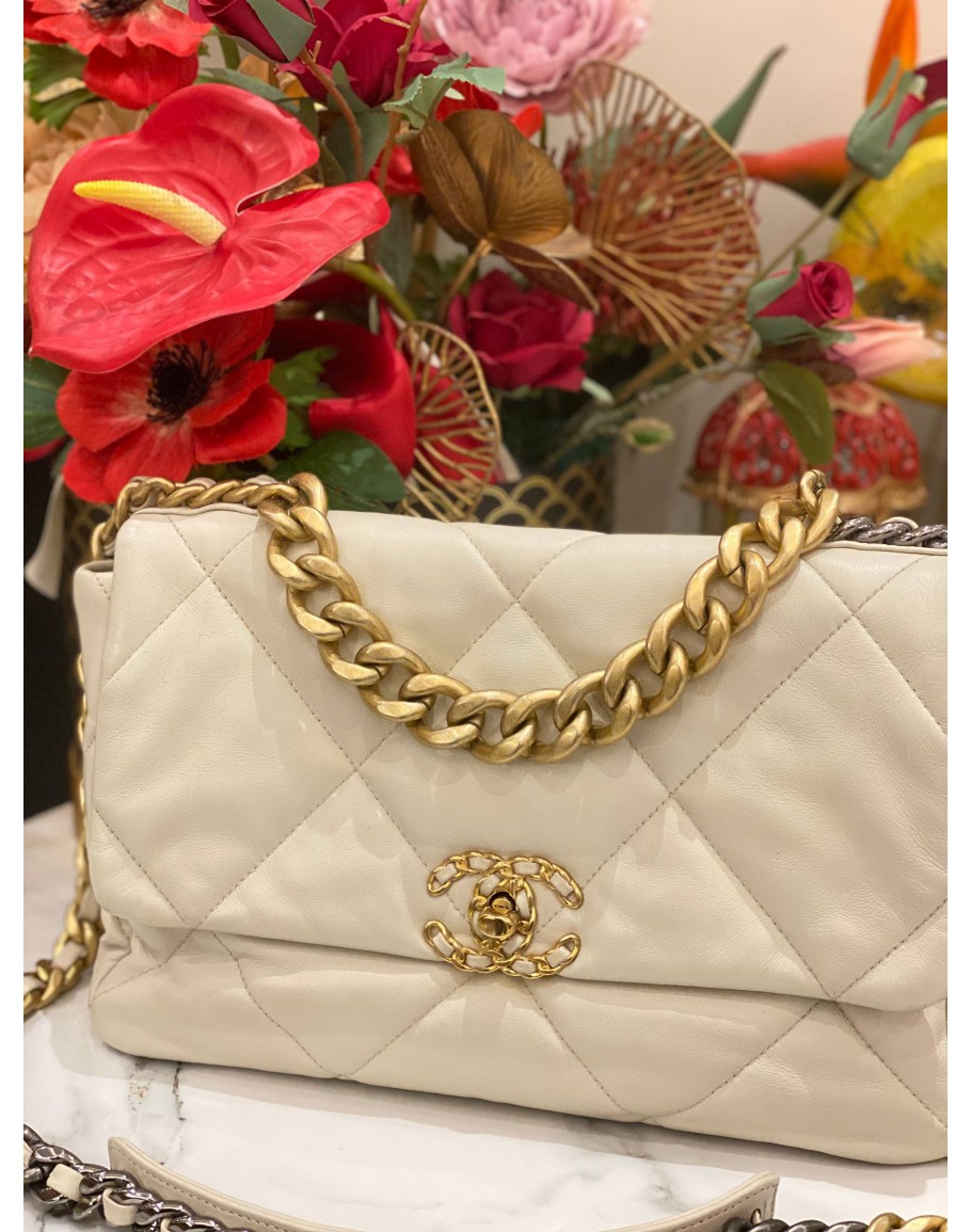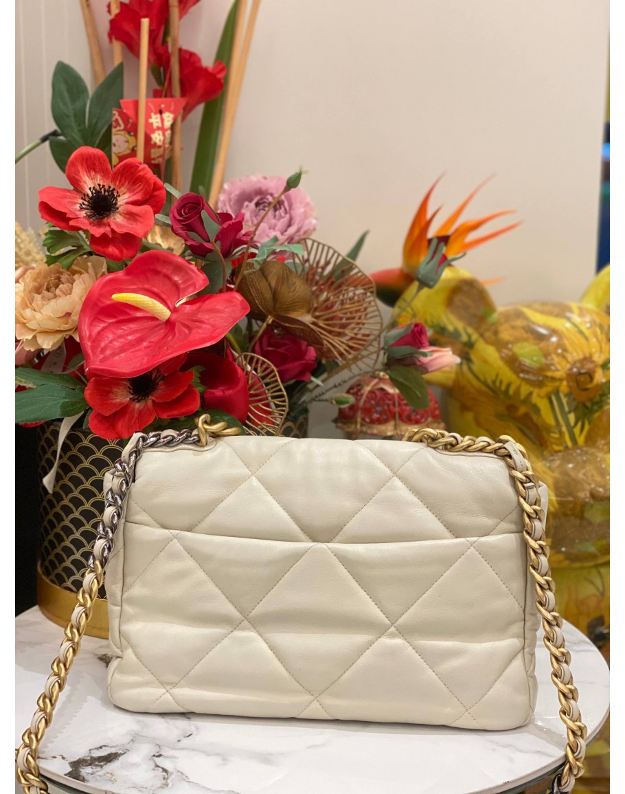 Product Code: CHANEL 19 FLAP SHOULDER BAG IN IVORY LAMBSKIN LEATHER