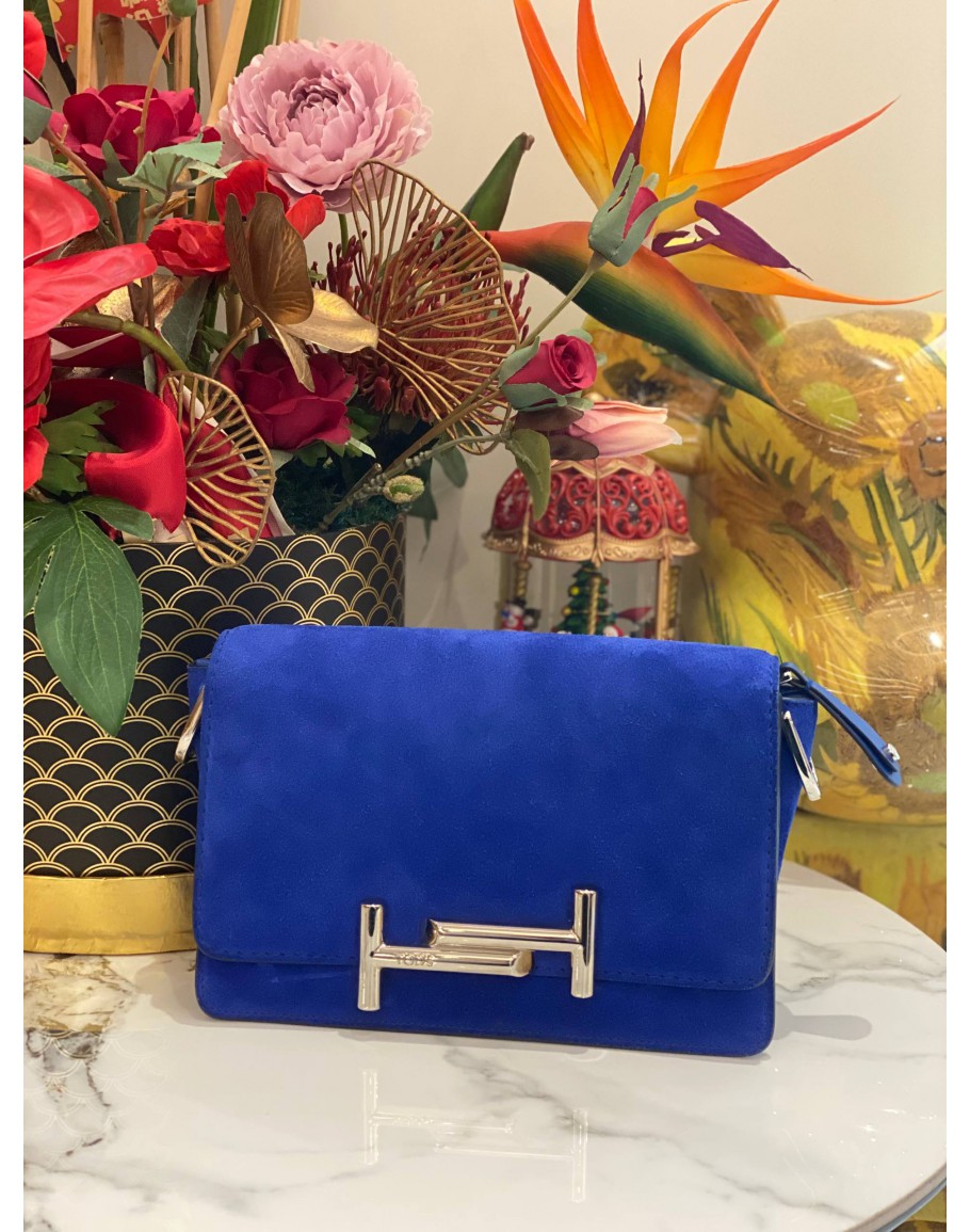 Tags: TOD'S DOUBLE T SHOCK BLUE VELVET LEATHER SILVER HARDWARE CROSSBODY BAG