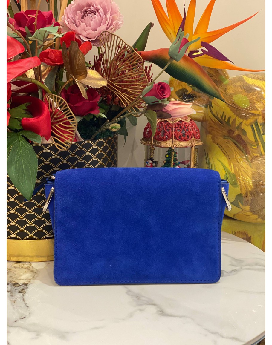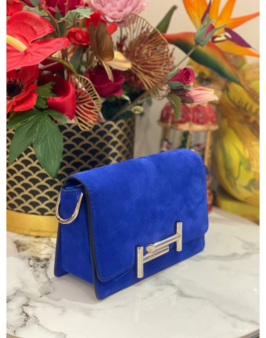 TOD'S DOUBLE T SHOCK BLUE VELVET LEATHER SILVER HARDWARE CROSSBODY BAG