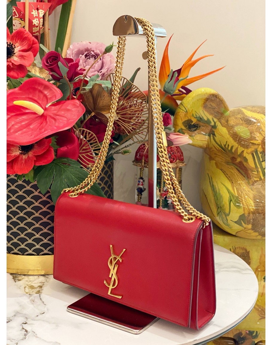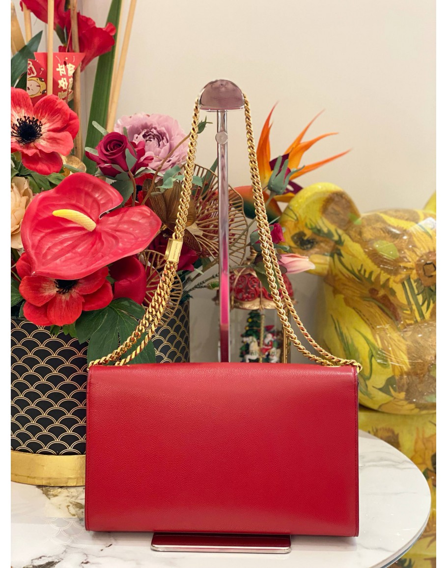 YSL YVES SAINT LAURENT RED MEDIUM KATE GOLD CHAIN BAG