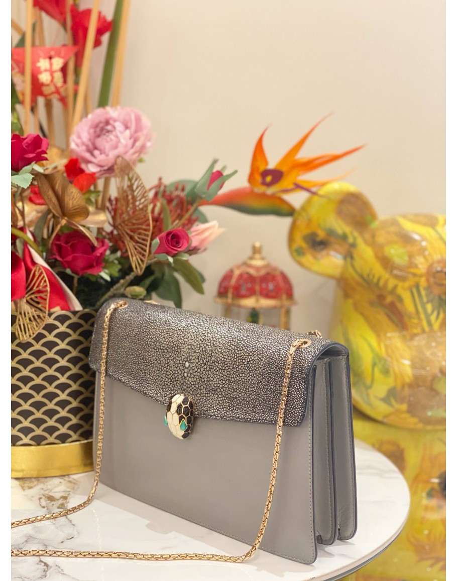BVLGARI SERPENTI GREY SHOULDER BAG