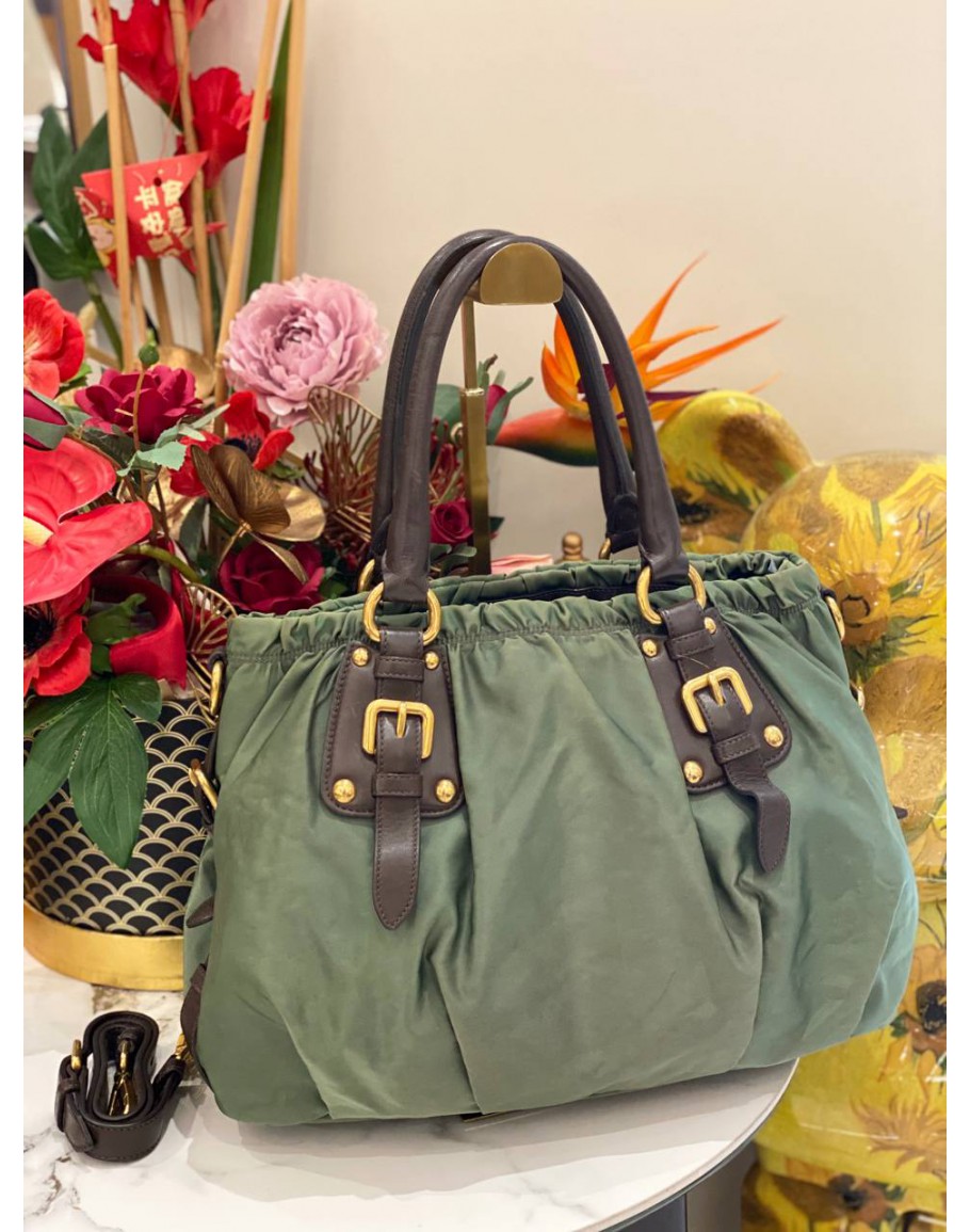 Tags: PRADA TESSUTO NYLON GAUFRE TOTE HANDLE BAG WITH GOLD HARDWARE